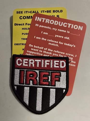 | Includes | Red card, yellow card, velcro IREF logo patch |